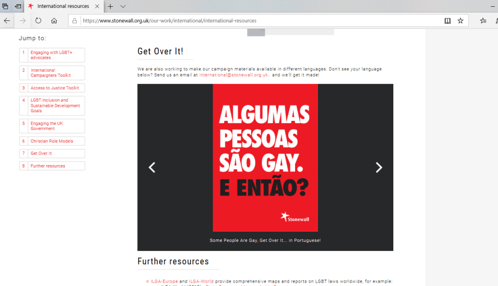A colleague Adam, who was also at the NEU LGBT+ conference found afterwards when researching online that you can get the Stonewall Get Over It! Posters in lots of different languages. What’s more, on their site they say if they don’t have the language you need they will make it. Looking forward to displaying, might try translation challenge first without the poster colours to give it away, then with poster colours if support needed. Also, working in a school with a high number of EAL students speaking many different languages, I will discuss with colleagues where we can display them around school. They could also be used on a day celebrating different languages such as European Day of Languages in September.